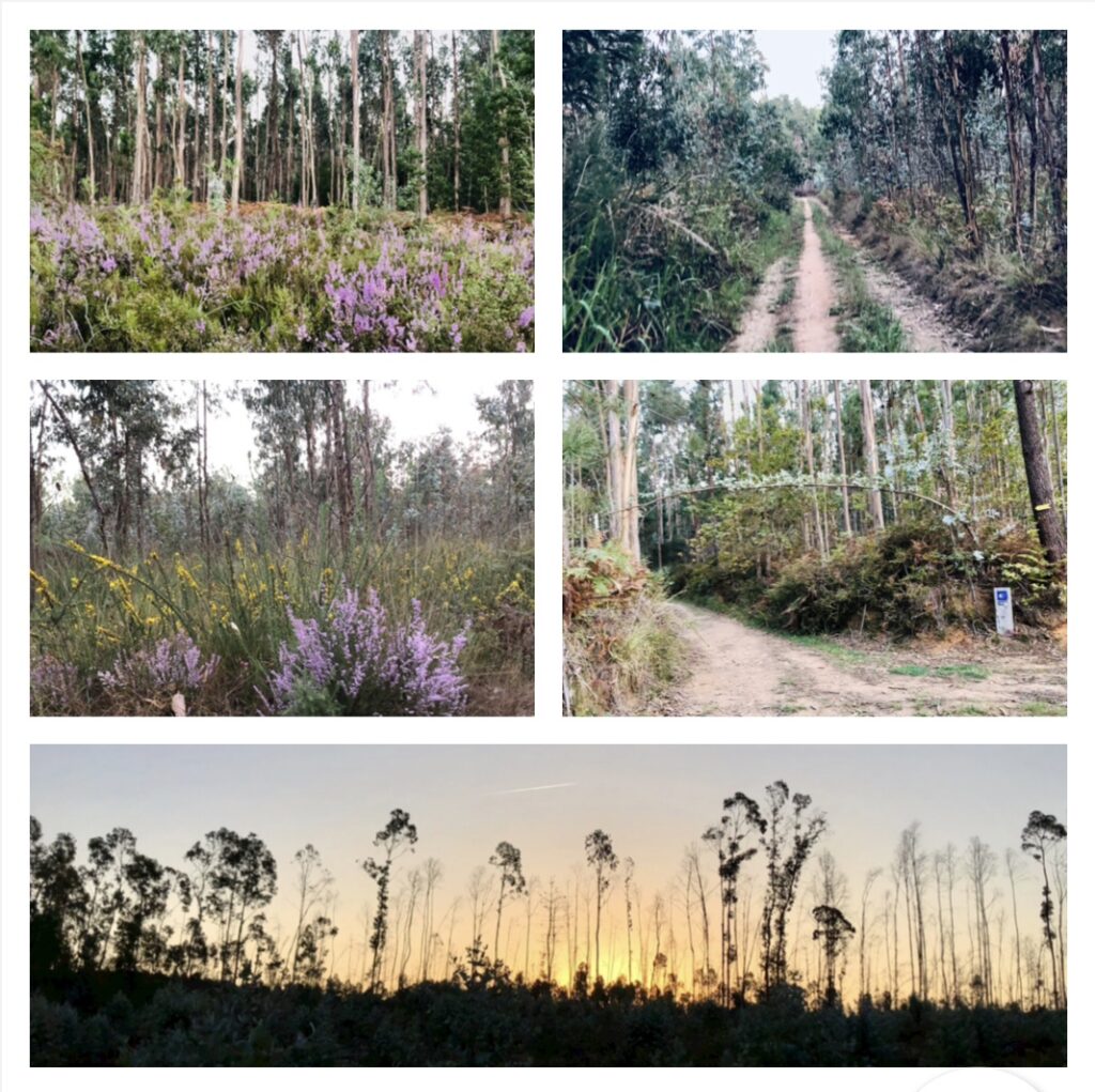 സൂര്യോദയത്തിനുമുൻപേ ആൽബർഗേറിയ അ വെല ഗ്രാമവും ജനവാസമേഖലയും പിന്നിട്ട് കാനന പാതയിലേറി. അതിരാവിലെ യൂക്കാലിമരങ്ങൾ നിറഞ്ഞ കാടിനുള്ളിലൂടെ കിളികളുടെ കളകളം കേട്ടു നടക്കുമ്പോൾ, വഴിയോരം അലംകൃതമാക്കി പുൽക്കൊടികളും പൂത്തുനിൽക്കുന്നു. യൂക്കാലി മരങ്ങളുടെ രൂക്ഷഗന്ധം ഏതോ ലഹരി വസ്തു ഉപയോഗിച്ചപോലുള്ള മത്ത് നൽകുന്നു, ശാന്തം സുന്ദരം.