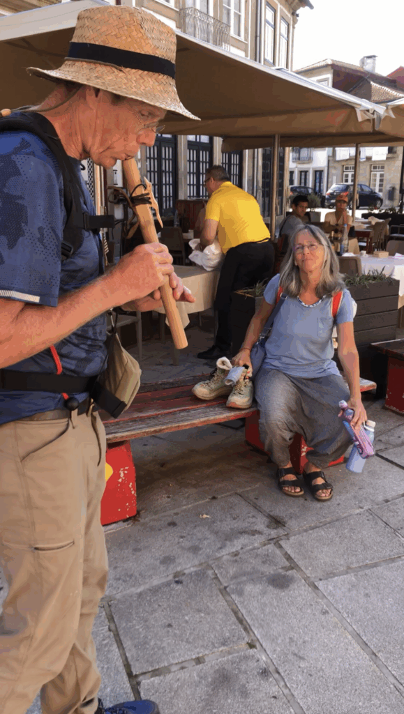 ടോണിയുടെ ഫ്ലൂട്ട് വായനക്കുശേഷവും ഞാൻ ഏറെ നേരം ടോണിയോടും പങ്കാളിയോടും ഒപ്പം ചിലവിട്ടു. അവരുടെ കാനേഡിയൻ ജീവിതരീതിയും കമീനോ കഥകളും കേട്ടുകൊണ്ട് റെസ്റ്റോറണ്ടിന് പുറത്തിട്ടിരിക്കുന്ന ബെഞ്ചിൽതന്നെ ആയിരുന്നു ഇരിപ്പ്. ഏകദേശം മൂന്നുമണി ആയതോടെ ഞാൻ അവരോട് യാത്രപറഞ്ഞു, കമീനോ പാസ്സ്പോർട്ടിൽ സീൽ കിട്ടുമോ എന്നറിയാൻ പള്ളി ലക്ഷ്യമാക്കി നടന്നു. പക്ഷെ അപ്പോഴേക്കും പള്ളി താത്കാലികമായി അടച്ചിരുന്നു. ഇനി നാലുമണി ആകും പള്ളി വീണ്ടും തുറക്കാൻ. അതുവരെ കാത്തുനിൽക്കുക അസാധ്യം, കാരണം ഇപ്പോൾ നടന്നുതുടങ്ങിയാലേ “റുബിയഷ്” എന്ന സ്ഥലത്തെ അടുത്ത ആൽബർഗിൽ ഇരുട്ടും മുൻപേ എത്തിച്ചേരാനാകൂ. ഇപ്പോൾ നിൽക്കുന്ന ഇടത്തുനിന്നും ഏകദെശം 17 കിലോമീറ്ററുകൾ നടന്നുവേണം അവിടെ എത്താൻ. മാത്രമല്ല അവിടേക്കുള്ള പാതയിൽ ധാരാളം കുന്നുകളും, മൺപാതകളും താണ്ടേണ്ടതായി ഉണ്ട്.