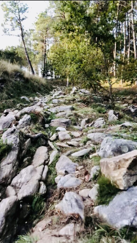 പക്ഷെ ടാറിട്ട വഴിയും വീടുകളും ഏറെ നീണ്ടുനിന്നില്ല. വീണ്ടും പാറക്കല്ലുകൾ നിറഞ്ഞ കുത്തനെയുള്ള പാത വന്നെത്തി. ഞാൻ ഊന്നുവടി കുത്തിഊന്നി കഴിയാവുന്ന വേഗതയിൽ നടന്നുകയറി.