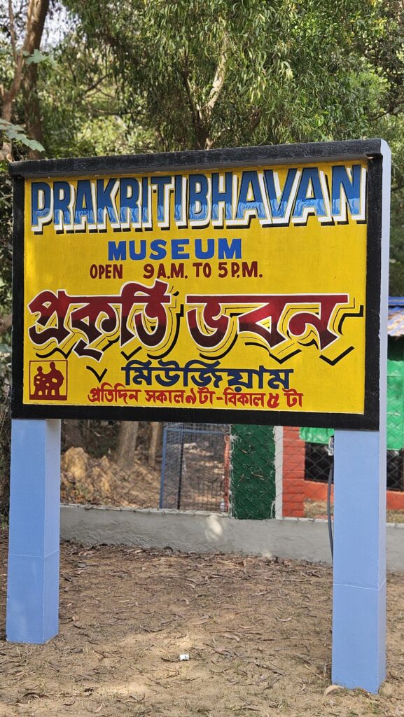 ശാന്തിനികേതന് വളരെ അടുത്തായാണ് പ്രകൃതി ഭവൻ സ്ഥിതിചെയ്യുന്നത്. ഒൻപതു മണി മുതൽ അഞ്ചുമണി വരെയാണ് സന്ദർശന സമയം. നിരവധി കലാകാരന്മാരുടെ കല്ലിലും തടിയിലും ലോഹത്തിലും സൃഷ്ടിക്കപ്പെട്ട കലാരൂപങ്ങളുടെ പ്രദർശനമാണ് പ്രകൃതി ഭവനിലുള്ളത്. മുപ്പത് രൂപയാണ് സന്ദർശക ടിക്കറ്റ്. പ്രകൃതി ഭവന് പുറത്തുള്ള മൈതാനത്ത് ശിലകളിൽ നിർമ്മിപ്പെട്ട ശില്പങ്ങളുണ്ട്. ഈ ശില്പങ്ങൾക്ക് താഴെ ടാഗോറിന്റെ ഗീതാജ്ഞലിയിലെ വരികൾ ആലേഖനം ചെയ്തിട്ടുണ്ട്. മ്യൂസിയവും ടാഗോറിന്റെ സങ്കൽപ്പമാണ്. പ്രകൃതിയുമായി താദാത്മ്യം പ്രാപിച്ചുള്ള മ്യൂസിയത്തിന്റെ ഘടനയാണ് അതിനെ വ്യത്യസ്തമാക്കുന്നത്. സന്ദർശിക്കുന്ന എല്ലാവരെയും തൃപ്തിപ്പെടുത്തുക എന്നതല്ല ഈ മ്യൂസിയത്തിന്റെ ലക്ഷ്യവും ഉദ്ദേശവും. ഈ മ്യൂസിയത്തിലെ പല പ്രദർശന വസ്തുക്കളും പ്രകൃതിയിൽ നിന്ന് ഉരുവം കൊണ്ടതാണ്. സ്ഥിരമായ മഴയിലും മാറുന്ന മാറുന്ന ഋതുക്കളാലും രൂപഭ്രംശം സംഭവിച്ച മരവും ശിലകളും കാഴ്ചയിൽ മനുഷ്യരുടെയും മൃഗങ്ങളുടെയും രൂപസാദൃശ്യമുള്ളവയായി മാറുന്നത് ഈ മ്യൂസിയത്തിൽ പ്രദർശിപ്പിച്ച വസ്തുക്കളിൽ കാണാൻ കഴിയും. ഇവയുടെ നിർമ്മാണത്തിൽ ചുറ്റികയോ ഉളിയോ ഉപയോഗിച്ചിട്ടില്ല എന്ന് സാക്ഷ്യപ്പെടുത്തിയിട്ടുണ്ട്. അതിനാൽ തന്നെ എത്ര ശ്രമകരമായിരുന്നു ഈ മ്യൂസിയത്തിന്റെ നിർമ്മാണം എന്ന് ചിന്തിച്ചു പോകും. മരങ്ങൾ ഒറ്റനോട്ടത്തിൽ മൃഗങ്ങളെപ്പോലെ തോന്നിപ്പിക്കും ശിലകൾ ആമകളെ പോലെ തോന്നും. ശില്പങ്ങൾക്ക് ഒപ്പം അവയെപ്പറ്റിയുള്ള കുറിപ്പുകളുമുണ്ട്. സലിൽ ചൗധരിയുടെ സംഗീതത്തെയും പഥേർ പാജ്ഞലി സിനിമയെയും പറ്റി ഓർമ്മിപ്പിക്കുന്ന ശില്പങ്ങളുമുണ്ട്. സുബ്രത ബസുവിന്റെ ശില്പങ്ങൾ വേറിട്ടവയാണ്.